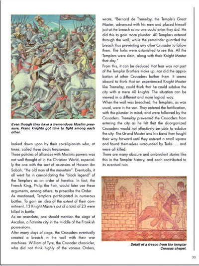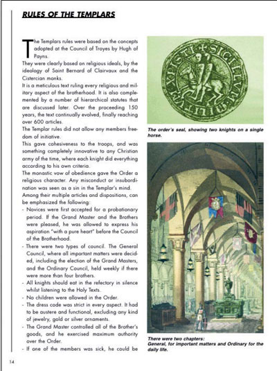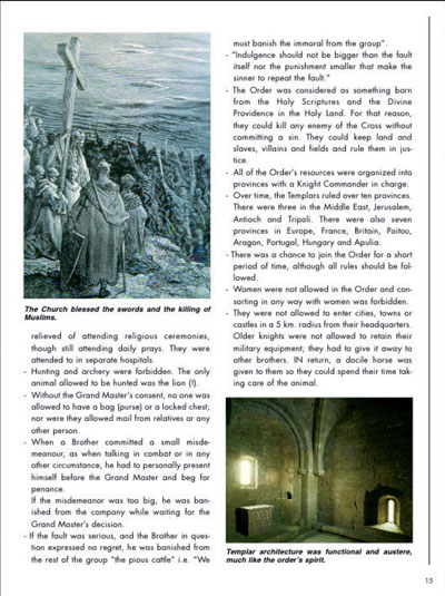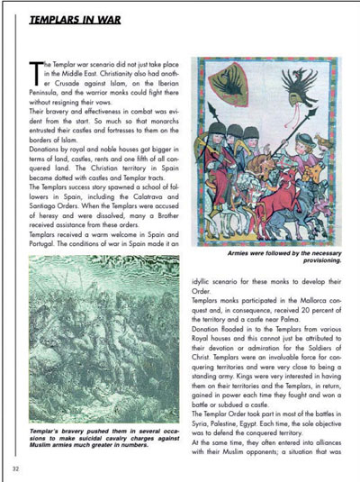 A magnificent 54 pages soft-cover book on the life and times of the Templars. Illustrated with over 25 original colour drawings. More than 25 colour photographs of equipment and weapons. Includes historical timelines.
