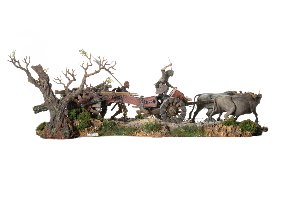 Kit para montar y pintar con 120 piezas de metal y escenario en resina. Incluye guía de montaje y pintura en inglés y castellano.