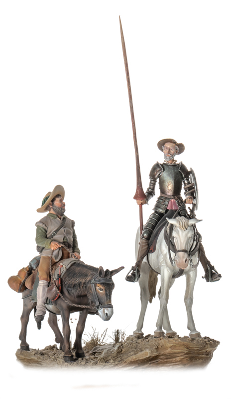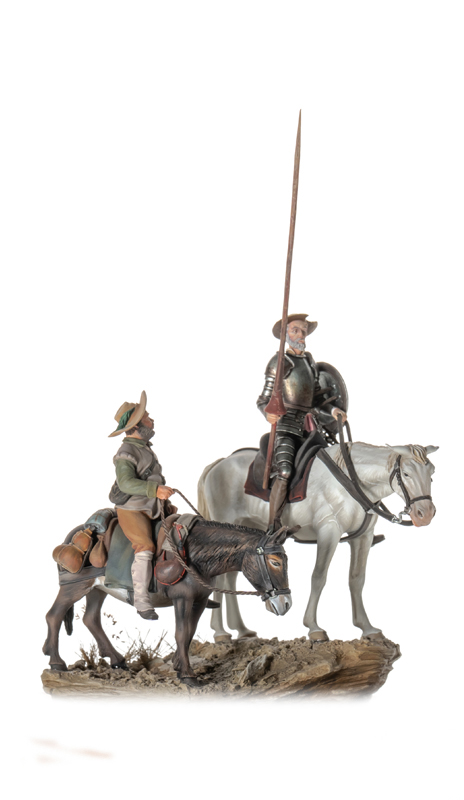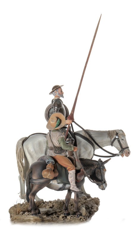 Más de 37 piezas en metal blanco para montar y pintar. Cabeza opcional de Don Quijote. Guia de montaje y pintura incluida.
