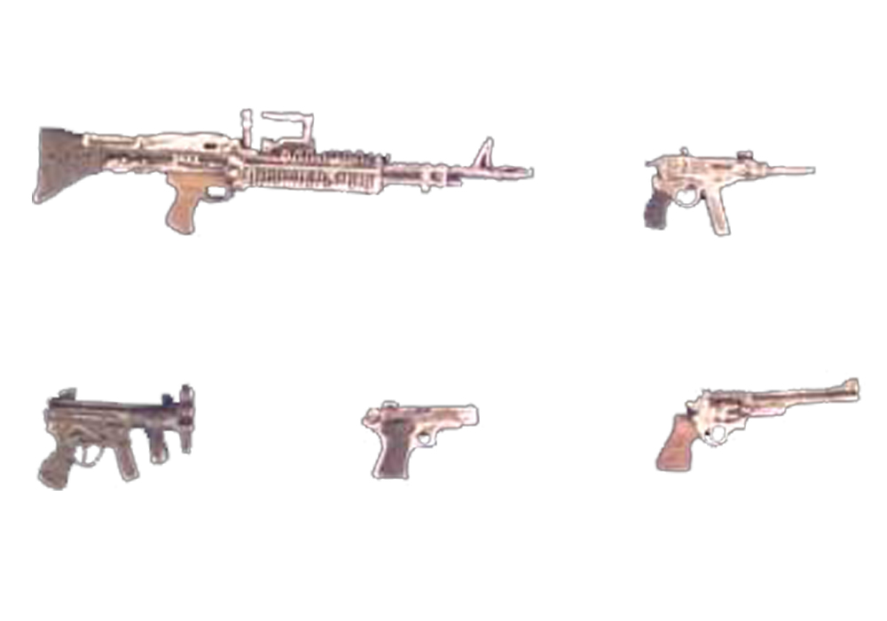 5 armas modernas en metal blanco para montar y pintar.