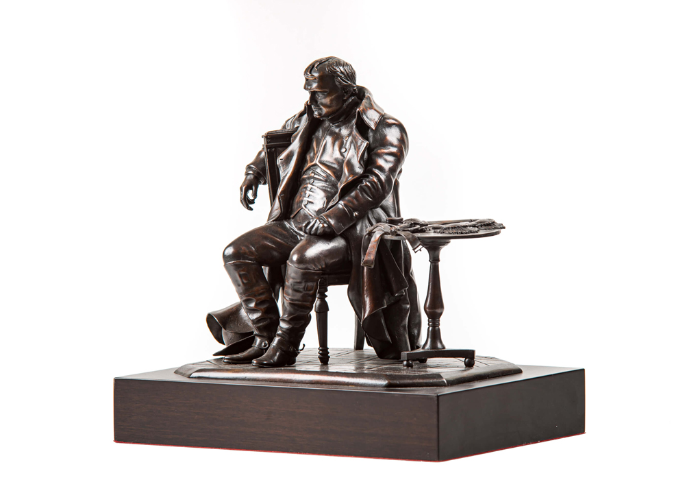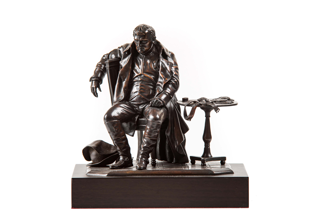 Entre las miles de representaciones pictóricas sobre Napoleón se encuentra Delaroche mostrándole en 1814 en el momento de la primera abdicación. Aquí el Emperador aparece en una pose inusual, profundamente preocupado por lo que está sucediendo. Como en todas las obras de Delaroche, la extraordinaria atención al detalle parecía reclamar el hacerle una escultura. La pintura de Delaroche ha sido muy estudiada por Fernando Andrea para producir una impresionante versión tridimensional del famoso lienzo.